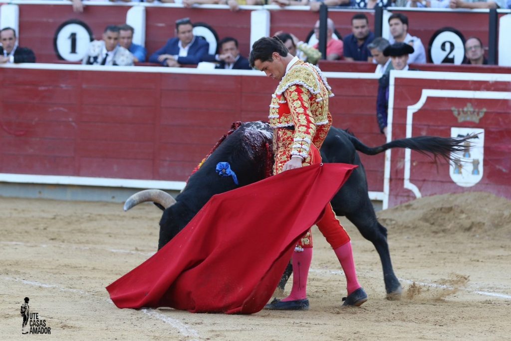 Más genio que bravura tuvo también el sexto, al que también le gustaban más los terrenos de tablas que los medios. Es cierto que el toro se movió pero también lo es que lo hizo sin entrega y sin humillar. A la defensiva y protestando por arriba, fue absolutamente imposible el lucimiento para el diestro toledano. Media estocada y descabello. Silencio.