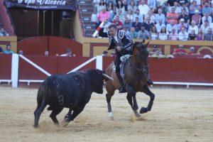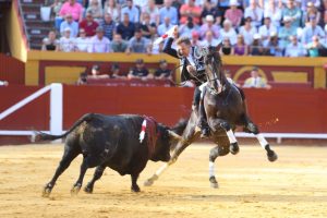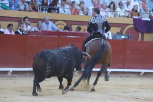 4º “Bucanero”, de Fermín Bohórquez. Sale Pablo Hermoso de Mendoza a lomos de “Nómada”, colocando un solo rejón de castigo. Seguidamente saca Pablo Hermoso al caballo “Talento”, colocando varias banderillas sobre el morrillo del astado. Conecta con los tendidos haciendo la suerte de la ‘hermosina’. Montando a “Malbec” continúa la faena en ascenso, colocando varias banderillas, transmitiendo una enormidad al público, y templando al buen toro de Fermín Bohórquez. Con “Justiciero” deja tres banderillas cortas, dejando para las mulillas al toro de dos pinchazos y rejonazo arriba. Dos orejas.