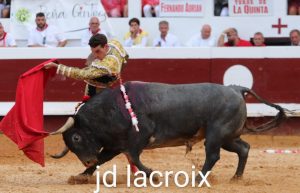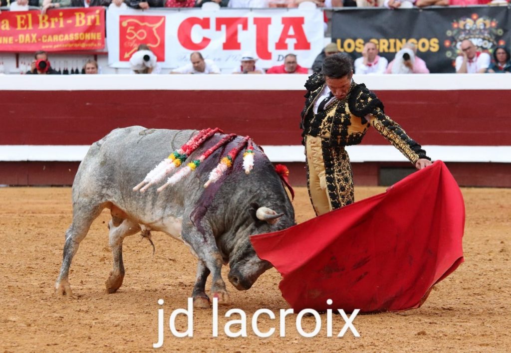 Plaza de toros de Dax (Francia). Séptimo festejo de la Feria. Corrida de toros. Casi lleno. Cornúpetas de la ganadería de La Quinta.