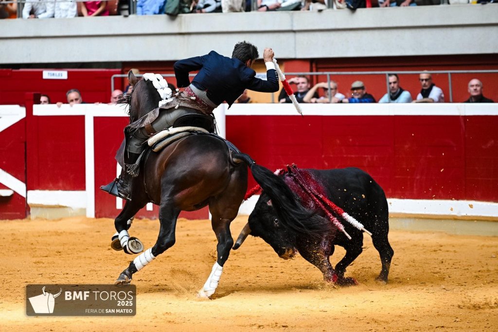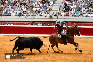 Plaza de toros de ‘La Ribera’ de Logroño. Segundo festejo de la Feria de San Mateo. Corrida de rejones. Ejemplares de El Capea, Carmen Lorenzo y San Pelayo.