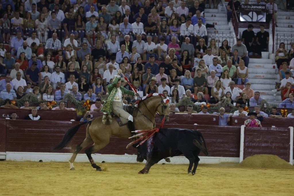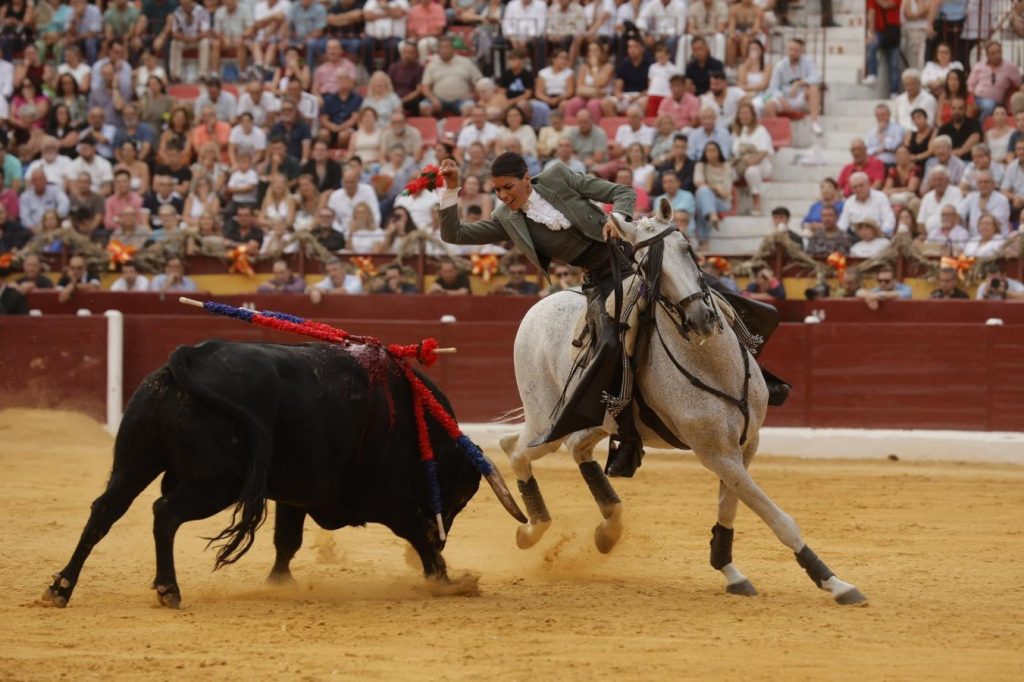 Lea Vicens paró muy bien al tercero montando a Guitarra y puso dos buenas banderillas con Joker batiendo muy bien. Elevó el tono de su actuación con Diluvio clavando dos palos buenos y gustándose en galopadas de costado dejándose llevar mucho a otro buen toro. Les concluyó su excelente actuación con Greco poniendo rosas. Mató de rejón fulminante y cortó dos orejas.