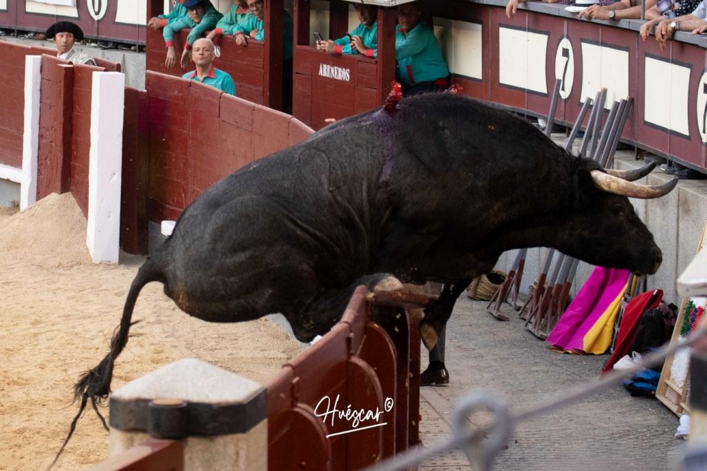 6º ‘Malacara’, Nº 2. Hasta dos veces saltó al callejón el último toro de la corrida, viviéndose escenas de pánico entre algunos de los ocupantes del mismo. Muy por encima de su antagonista, Duarte Fernandes, que se sobrepuso a la cornada sufrida durante la faena a este ejemplar a su caballo ‘Ilusión’, que fue conducido de forma rápida hacia el patio de caballos de Las Ventas. Silencio para el rejoneador portugués.