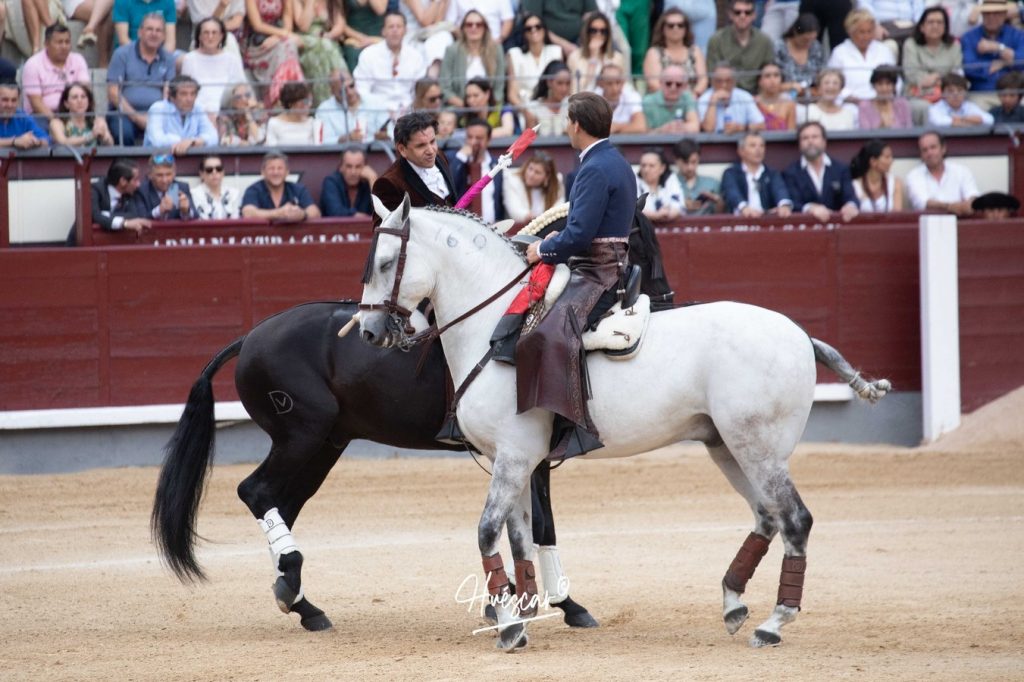 Plaza de toros de Las Ventas de Madrid. Vigésimo festejo de la Feria de San Isidro. Segunda corrida de rejones. Lleno de ’no hay billetes’ Reses de la ganadería de Los Espartales, mansos, de poca colaboración con los rejoneadores, con la raza justa y apagándose pronto.