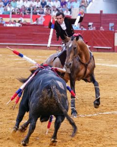 4º ‘Rumbita’, nº 37 (Cortés de Moura). Extraordinaria forma de temblar por parte de Diego Ventura al cuarto de la tarde, con ‘Chiado’. Con ‘Nivaldo’ citó de frente y quebró la embestida antes de clavar las banderillas. Seguidamente, sacó a ‘Quitasueños’, con el acortó más aún las distancias, clavando tres banderillas en el morrillo de su oponente, que fue noble y con gran fijeza. Ajustó mucho los quiebros, llegándole a la cara. Con ‘Bronce’ formó un alboroto tremendo en los tendidos, dejándole al toro un par a dos manos sin cabezada el caballo. La locura colectiva culminó con las tres banderillas cortas que colocó a lomos de ‘Brillante’. Pinchazo y rejonazo en lo alto. Dos orejas.