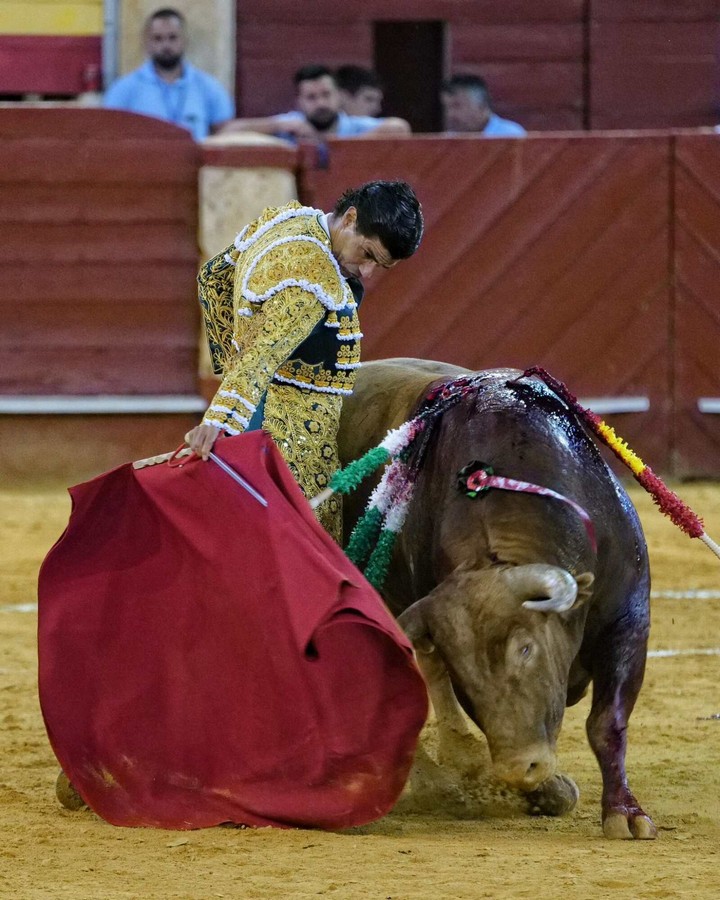6º ‘Jacobero’, nº 26 (El Pilar). Muy bien lidió Pablo Aguado con el percal al sexto de la tarde. Excelente quite por delantales después del paso por el caballo de picar. Gran lidia de Iván García. Obra de mucho sabor y torería del diestro sevillano, para paladares exquisitos. Muy firme Aguado, que fue haciendo al toro poco a poco, con paciencia y una buena dosis de fondo técnico cuajó al animal de El Pilar, que tenía virtudes pero que fue exigente y mirón, aunque después obedecía a los toques. Faena importante, muy templada, por ambos pitones, logrando tandas en las que los muletazos brotaron muy despacio de la franela de Pablo Aguado. Mejores resultaron lo pasajes cuando lechó la pañosa adelante y se lo trajo toreado al de El Pilar. Empaque tuvieron los ayudados y muletazos al paso de cierre del trasteo. Espadazo arriba, volcándose sobre el morrillo. Dos orejas.