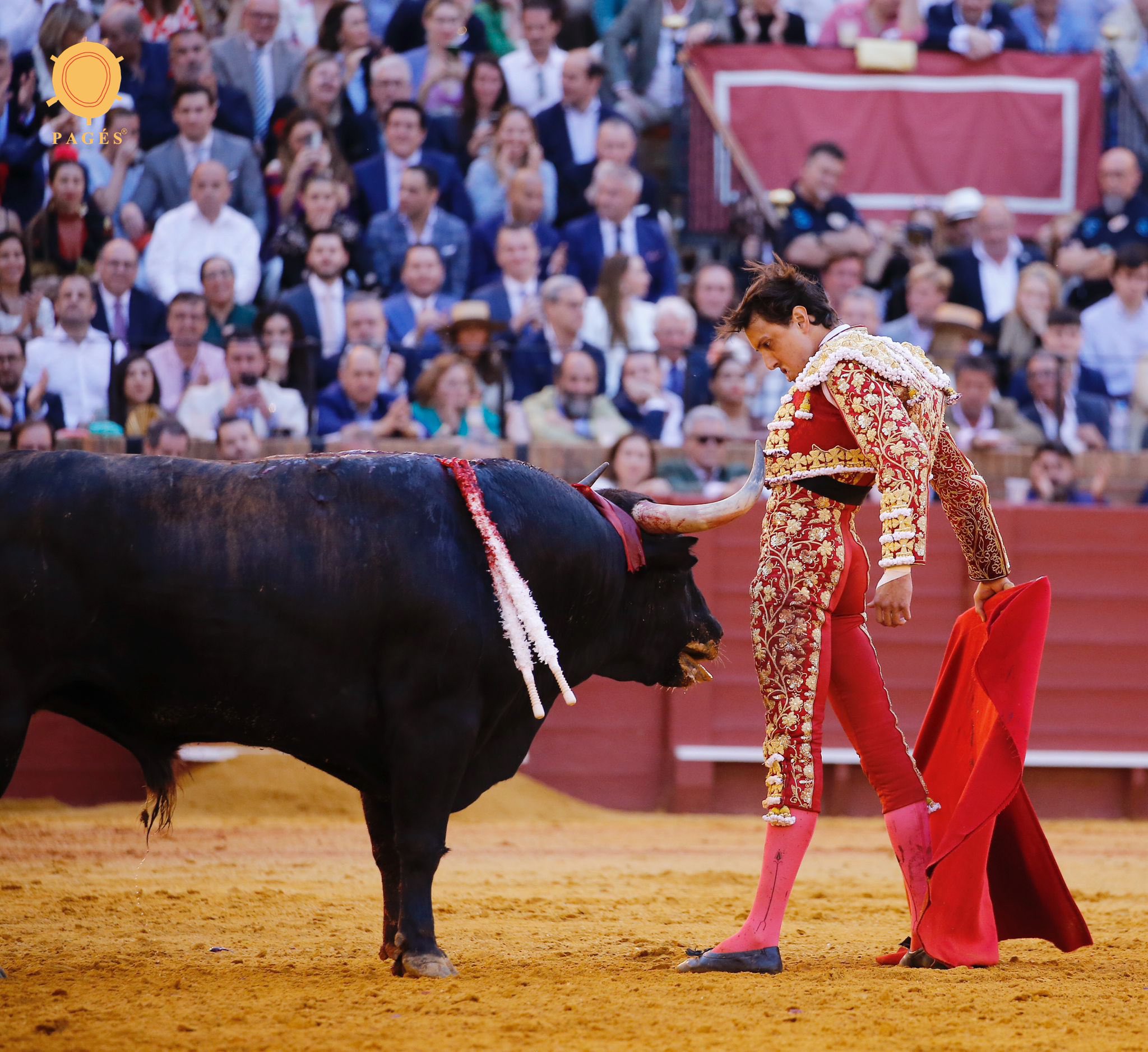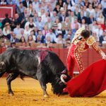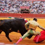 Con nobleza y por abajo ha embestido el segundo de la corrida, del que hay que decir que ha lucido una presentación por debajo de lo que se exige en una plaza de la categoría de Sevilla. Con un pase cambiado por la espalda en los medios ha comenzado su faena Roca Rey, ligando posteriormente los muletazos y abrochando con un largo pase de pecho. Fijeza y nobleza del astado de la divisa madrileña, al que ha exigido mucho el torero peruano. Con profundidad han brotado los naturales de la muleta de Roca Rey, dejándosela en la cara por el pitón derecho para que el cornúpeta persiguiera el engaño hasta el final. En el tramo final del trasteo, se ha metido entre los pitones, resultando volteado. Concluye su labor con unas ajustadas bernadinas. Estoconazo. Dos orejas.