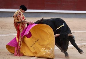 4º ‘Morisqueto’, Nº 35 (El Freixo). A la puerta de chiqueros se fue Marco Pérez para recibir al cuarto astado de la tarde, que sin fijeza alguna dio varias vueltas al ruedo nada más pisar la Monumental madrileña. Barbeó tablas, manseando con claridad en esos primeros momentos. Con rogerinas sacó del caballo el espada salmantino al cornúpeta, ejecutando después el llamado ‘Quite de Oro’. Actuación seria y responsable de Marco Pérez en la faena al burel de la divisa gaditana. En las dos tandas iniciales con la derecha lo crujió por abajo, dejándole la muleta puesta por delante para obligarlo a repetir. Ajuste, reunión, capacidad y profundidad en los derechazos del joven torero de Salamanca. Posteriormente, cuando el utrero echó la persiana se metió entre los pitones para terminar de imponerse. Buena actitud de Marco Pérez, que exhibió además un gran oficio. Gran estocada. Ovación con saludos tras petición y aviso.