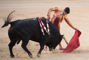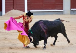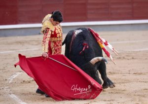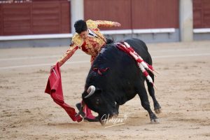 5º ‘Boquiflojo’, Nº 96 (Fuente Ymbro). También al quinto lo saludó a portagayola Marco Pérez, prosiguiendo a continuación, ya en pie, con lances a pies juntos. Excelente quite por gaoneras del novillero de Salamanca, con las plantas quietas y llevando muy toreado a su enemigo. Buena lidia de Rafael González. Faena importante, de mucho peso de Marco Pérez al animal de Fuente Ymbro. El astado tuvo raza, transmisión, emoción y bravura en su embestida. Muy exigente el novillo que se echó a los lomos por dos veces a Marco durante el trasteo con la franela. Entrega absoluta del novillero que cuajó dos series extraordinarias con la mano derecha al inicio, después del vibrante comienzo de su obra con dos pases cambiados por la espalda. Después también llegaron tandas de naturales rotundas, macizas, con la pañosa arrastrando por la arena venteña y vaciando detrás de la cadera. No escatimó nada de esfuerzo Marco Pérez, que se tiró encima del cornúpeta a la hora de matar pero falló en el primer viaje. Vuelta al ruedo tras aviso para Marco Pérez.