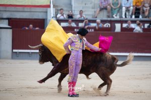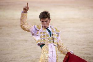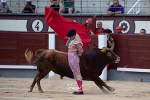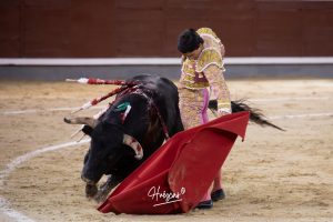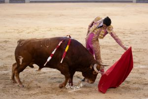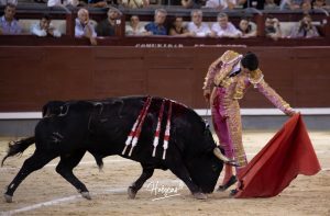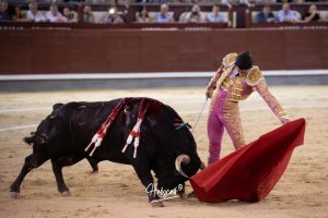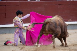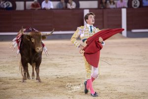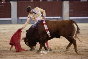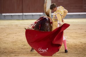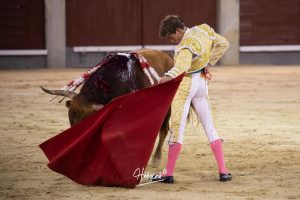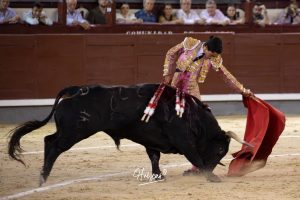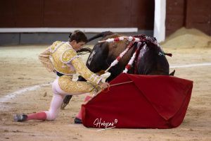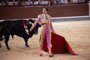 Tras ser herido Sergio Sánchez en el primero de su lote, se corrió turno y en cuarto lugar salió el quinto, segundo del lote de El Mene con el que llegaron los mejores momentos del festejo. Un novillo de mejor condición que sus hermanos al que saludó con buenas verónicas. De muleta lo inició por bonitos doblones. Al natural llegaron los momentos de más conexión con una embestida que transmitió. Por este pitón, fue prendido sin consecuencias. Volvió a la cara del novillo y dejó otra buena serie. Paseó una oreja.