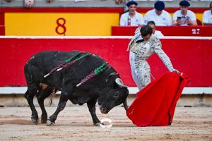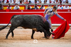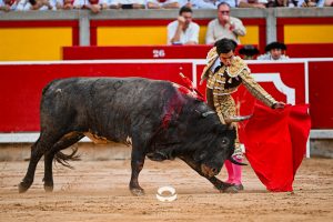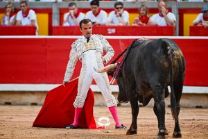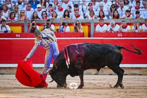2 ‘Embajador’, Nº 20. También se hincó de rodillas en la puerta de chiqueros Damián Castaño, en el toro de su debut como matador de toros en Pamplona. Empujó y metió los riñones el astado mureño en el peto. Buenos pares de banderillas de Rubén Sánchez y Alberto Carrero, con el burel sin humillar en ningún momento. Gran lidia de ‘Jarocho’. Muy parado el toro, probando y midiendo bastante al torero, que estuvo muy por encima de la condición de su enemigo. Lo intentó por ambos pitones pero un cornúpeta con mucho que torear, reservón y sin entrega. Media estocada arriba. Ovación con saludos.