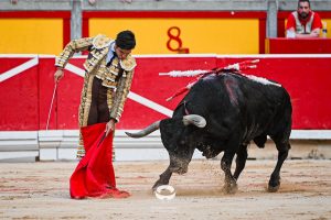1º ‘Divorciado’, Nº 73. A portagayola se fue Manuel Escribano para saludar al primero de la corrida, que después embistió de forma templada al capote del diestro de Gerena. Poca fuerza del astado de la ‘A’ con asas tras el tercio de varas. Compartieron tercio de banderillas Manuel Escribano y Colombo, con el toro viniéndose arriba. Sobresalió el primer par, colocado por el matador sevillano. Con un pase cambiado por la espalda en el platillo, inició la faena Escribano. El ejemplar de Miura fue noble pero algo soso y con poca emoción en su arrancada. Muy firme y templado Manuel Escribano, que extrajo muletazos de entidad con la mano derecha. Por el lado izquierdo, en cambio, derrotaba por arriba. También por ahí, le enjaretó una tanda, de mucho mérito, el espada de Gerena. Estocada trasera. Ovación con saludos tras aviso.