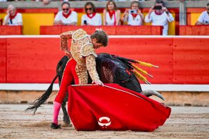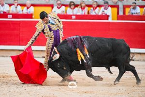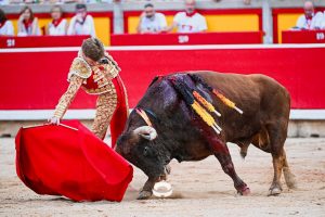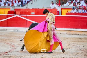Plaza de toros de Pamplona. Sexto festejo de los Sanfermines. Cuarta corrida de toros. Lleno. Ejemplares de la vacada de Victoriano del Río.