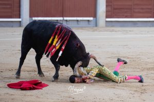 La tarde parecía torcerse con el espeluznante percance de Emilio de Justo en la primera tanda con la diestra al abreplaza. Lo volteó de forma dramática y fue trasladado a la enfermería. Con raza salió a matar al sexto y así se lo reconoció Madrid, entregado con el extremeño desde el gran inicio por verónicas y templada larga de remate. En los medios, con la diestra sin ayuda, bordó el toreo sin miramientos ante una embestida de gran transmisión. Una faena de entrega basada en este pitón. Rugió Madrid en una labor que fue a más. Enorme al natural. Tras estocada de gran efecto, Madrid pidió las orejas y le fue concedido el doble trofeo que le abrió la Puerta Grande.