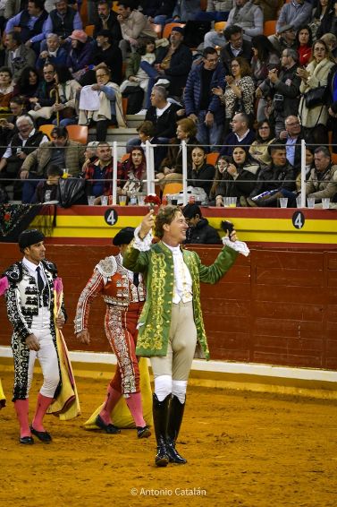 Tarde para el recuerdo, con una magistral actuación del rejoneador afincado en tierras sevillanas, que paseó dos orejas y rabo en cada uno de sus toros; Andy Cartagena desorejó a su lote y Rui Fernandes destacó especialmente frente al primero, paseando un premio de cada oponente.