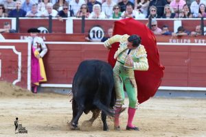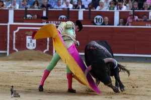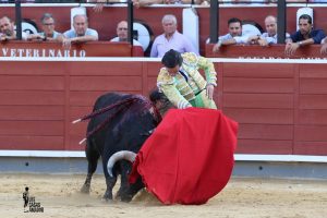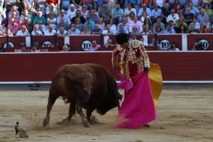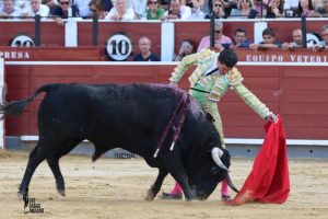 El quinto derribó al picador Manuel Cid, hiriendo en el cuello el toro de La Ventana del Puerto al caballo de picar de la cuadra de ‘El Pimpi’. Buena lidia de Javier Ambel. Comenzó faena Talavante con muletazos por bajo, flexionando la pierna de salida, con el que hizo albergar esperanzas de que aquello podía cuajar. Los mejor del trasteo fueron algunos naturales largos y de buen trazo. Labor breve, marchándose a por la espada para dejar para las mulillas al animal de la vacada salmantina de una estocada tendida y un descabello. Silencio.