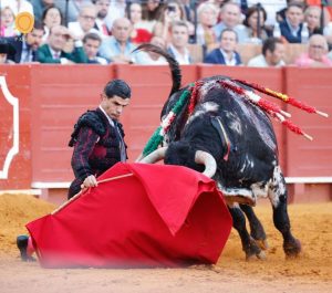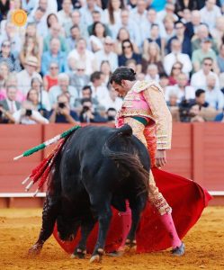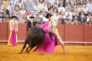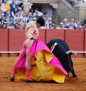 4º ‘Bocinero’, nº 69. No pudo lucirse de salida con el capote Juan Ortega ante el cuarto. Sí que lo hizo en el quite tras el primer puyazo, en un sensacional quite por verónicas, muy despacio. Después del segundo puyazo, realizó un magnífico quite por cordobinas David de Miranda. Con unos preciosos muletazos por bajo rodilla en tierra, alargando el viaje del toro, inició la faena Juan Ortega. Sensacional astado de Victoriano del Río, con codicia, con entrega, con transmisión. Fondo de bravo del animal y obra cumbre del diestro de Sevilla, sobresaliendo las tandas ejecutadas con la mano derecha. Ajuste, reunión, pureza, temple, torería, naturalidad de Juan Ortega, que puso a la Maestranza en pie. Acertó en el planteamiento el matador hispalense, perdiéndole pasos al toro puesto que se venía con celo después de cada muletazo. Por el lado izquierdo, hubo tan sólo una tanda, ya que por ahí el burel exigía al torero colocarse entre muletazo y muletazo. Cerró la faena con unos bellos ayudados. Espadazo algo desprendido. Oreja con petición de la segunda.