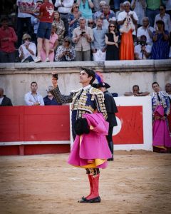 Coliseo romano de Nimes (Francia). Tercer festejo de la Feria de Pentecostés. Segunda corrida de toros. Ejemplares de la divisa de Hnos. García Jiménez.