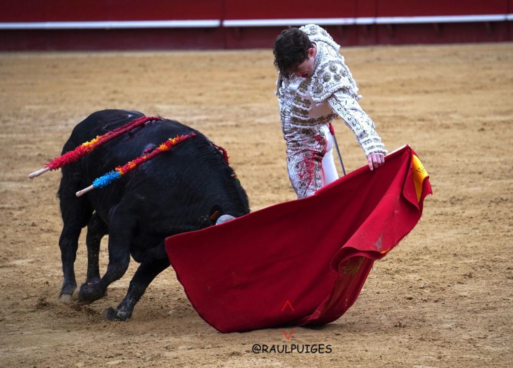 Israel Guirao, de la Escuela Taurina de Valencia, ha paseado una oreja en la novillada sin picadores lidiada este sábado en la Plaza de Toros de Valencia, primera cita del abono de la Feria Taurina de Fallas 2026.