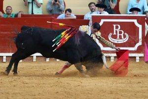 Plaza de toros de El Puerto de Santa María (Cádiz). Sexto y último festejo de la Temporada de Verano. Más de media entrada. Cinco astados de Puerto de San Lorenzo y uno (1º) de La Ventana del Puerto.