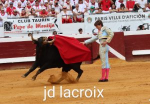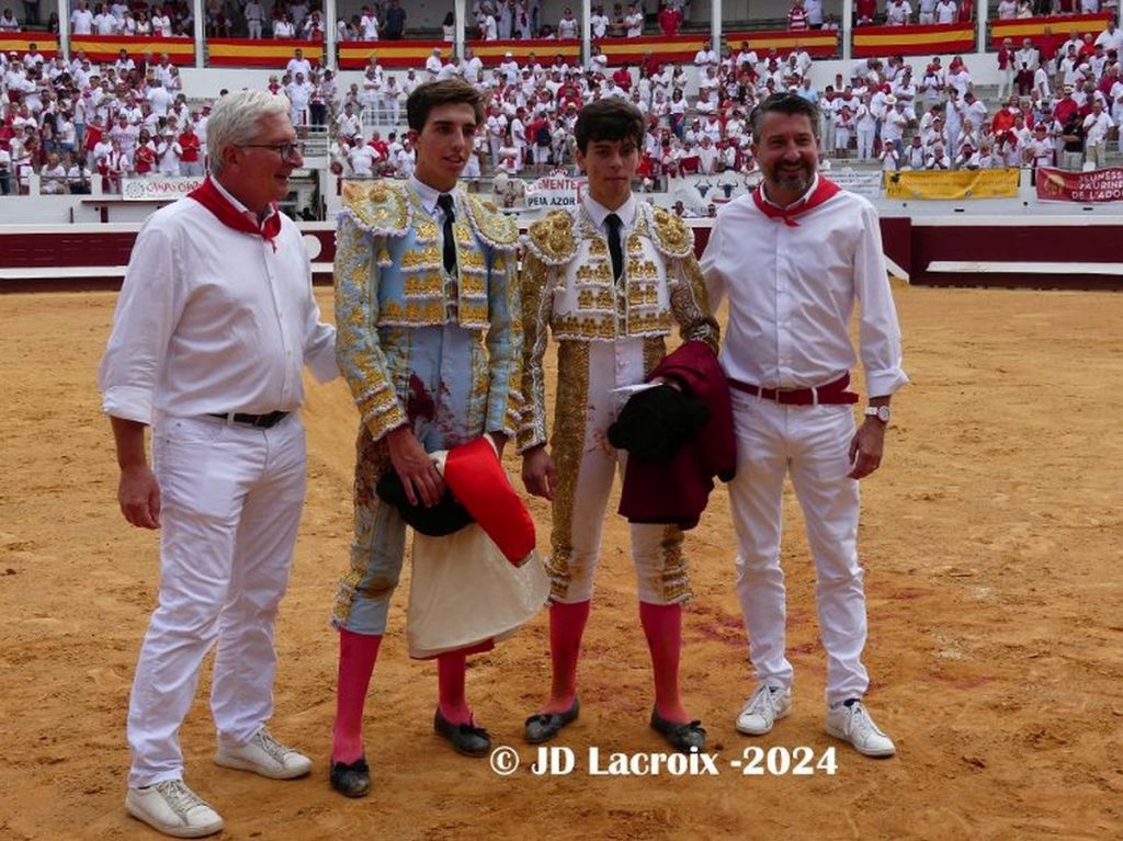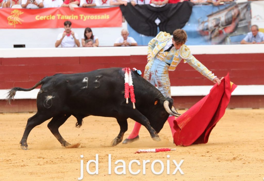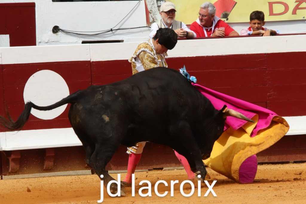 Plaza de toros de Dax (Francia). Sexto festejo de la Feria. Novillada sin caballos. Final. Media entrada. Cuatro erales de la divisa de La Espera.