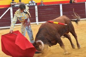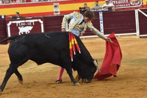 Ángel Pérez saludó al que hizo tercero, ‘Embolado’, a porta gayola. Magnífico quite por chicuelinas de Julio Norte. Extraordinario animal de El Torero, de una enorme clase y ritmo, sobre todo por el lado izquierdo, al que hilvanó una faena a más -muy al alza- Ángel Pérez, que inició de rodillas. Los momentos álgidos del trasteo llegaron con la mano zurda, pitón por el que el astado de El Torero tenía más calidad y embestía más largo. Por abajo, rompió al novillo Ángel Pérez, que culminó su labor con unas luquesinas de rodillas, dónde expuso bastante con el pecho “pa’lante”. Gran dimensión de joven gaditano. Estocada corta perpendicular y algo desprendida. Dos orejas tras aviso.