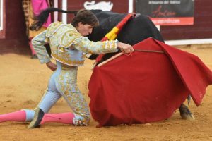 Una vez más se marchó a la puerta de chiqueros Ángel Pérez a saludar al quinto de la tarde, ‘Herculeo’, prosiguiendo después con una larga cambiada en el tercio. Gran quite por gaoneras de Julio Norte, pasándose al cornúpeta muy cerca. Toreando en redondo de rodillas empezó la faena el torero gaditano, frente a un oponente al que le faltó humillar y mayor entrega en los chismes. Muchas teclas sacó este último del lote de Pérez. Las tandas más notables del trasteo de Ángel Pérez llegaron al natural, poniéndolo mucho el novillero ya que el astado era algo soso en su embestida. Toreo elegante y muy templado por parte de Ángel en una obra muy personal y de gran metraje. Terminó con circulares y manoletinas de rodillas, momento en el que fue volteado, sufriendo un puntazo en la parte posterior del muslo. Después no le funcionaron los aceros a Ángel Pérez, siendo ovacionado tras escuchar dos avisos.
