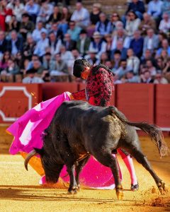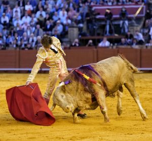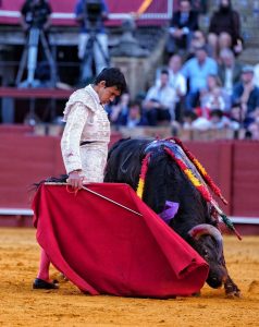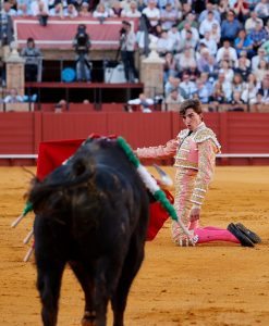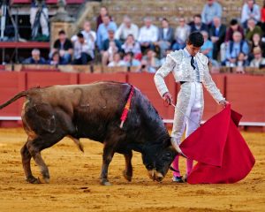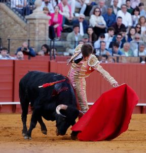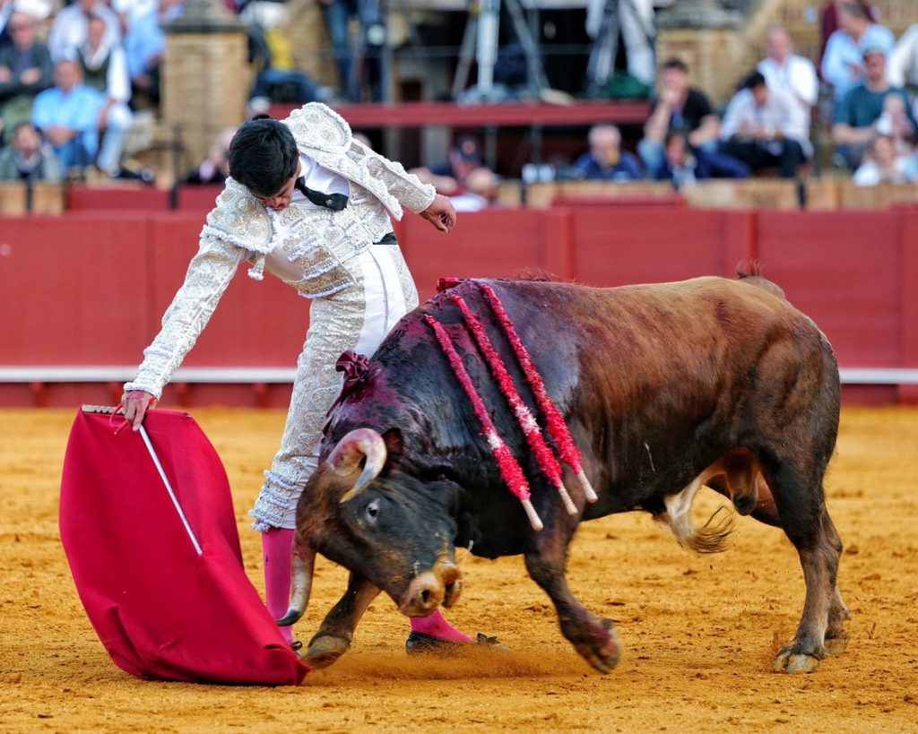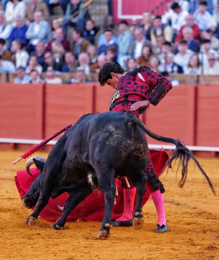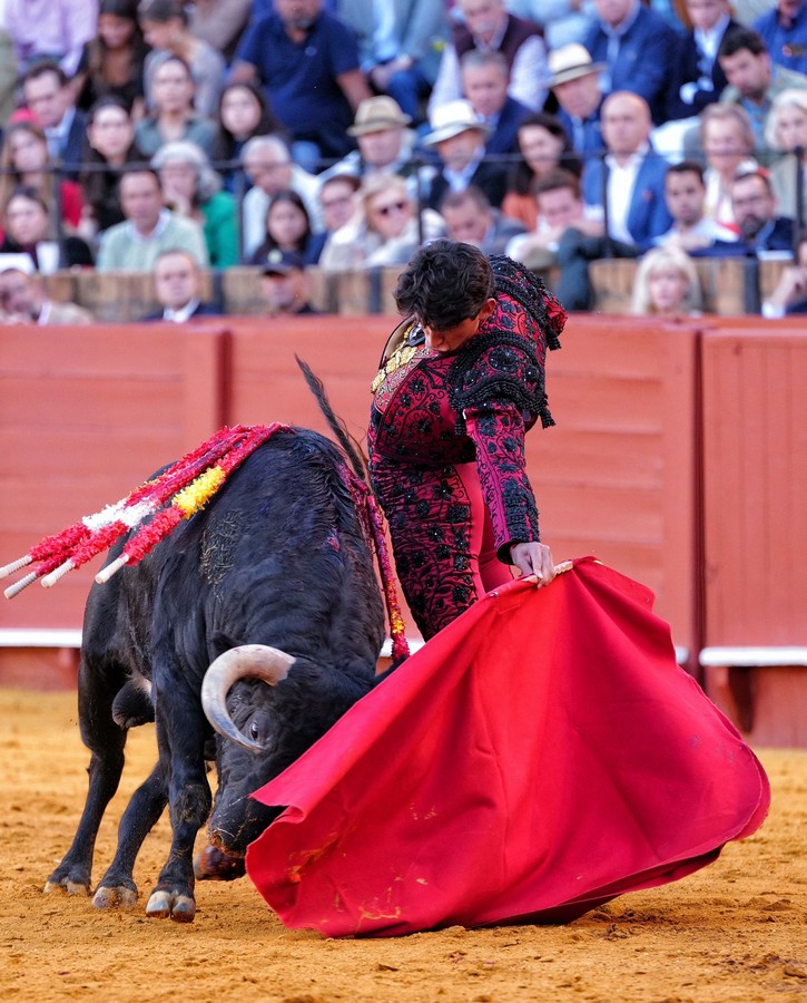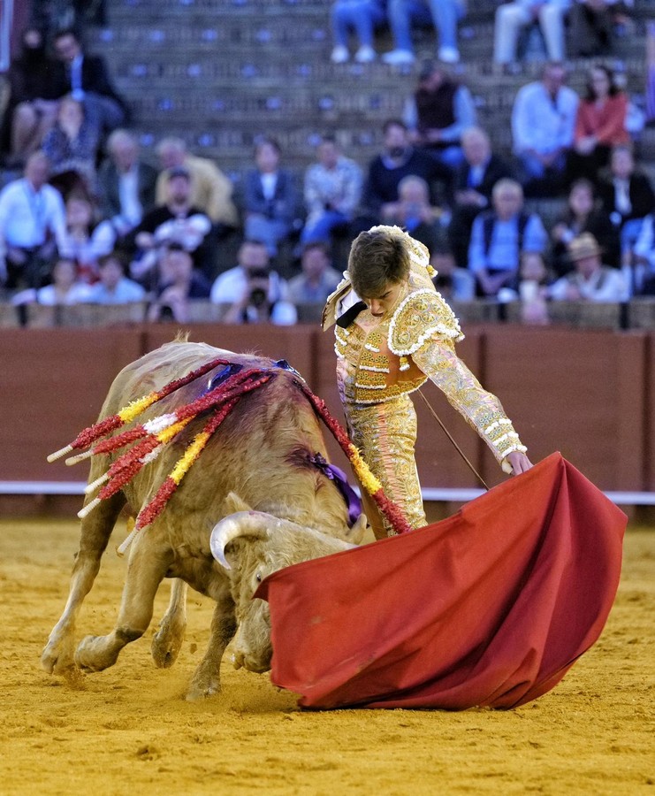 4º ‘Catetoncita’, nº 43. Extraordinarias verónicas en el saludo al cuarto de Emiliano Osornio. Mala pelea del novillo en varas, protestando con la cara arriba, fundamentalmente en el primer puyazo. Quite por chicuelinas de Tomás Bastos. En banderillas, hubo que llegarle mucho tanto con las telas como con los garapullos para que se arrancara. Ejemplar noble pero con menos transmisión y clase de segundo y tercero. Muy torero todo lo que le hizo Osornio, soberbios los naturales, muy bien colocado siempre y muy de verdad. De uno en uno, sin ligarle porque el novillo se le venía haciendo hilo, logró pasajes muy lucidos con la zurda, que calaron en los tendidos de la Maestranza. Pinchazo hondo bajo, echándose el animal. Ovación.