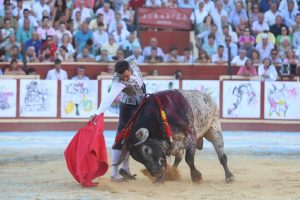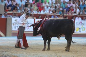 El primero de la tarde no humilló en el capote de ‘El Cid’, que le enseñó a embestir en esos momentos iniciales. En varas no mostró el de Miura demasiada fuerza, así como tampoco en el segundo tercio. Imposible el lucimiento para Manuel Jesús ‘El Cid’ dada la escasa fuerza del animal, lo intentó el diestro de Salteras pero se marchó pronto a por la espada. El toro de Miura fue noble pero con la limitación ya apuntada anteriormente. Gran estocada. Aplausos.