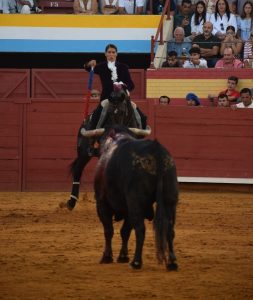 Espectacular despertar del primero de la tarde que, sin celo ninguno de inicio, echó a galopar tras la yegua “Guitarra” tras el primer par de banderillas en la que la rejoneadora no le quedó más opción que tirar hacia delante con aquel avivar a galope tendido. Lo llevó cosido en el estribo siendo un toro colaborador y con movilidad después del embroque al que la francesa le hizo las cosas muy despacio. Finiquitó con la vida de este primero al que le cortó sus apéndices.