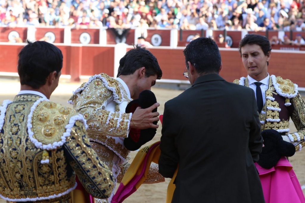 Paco Ureña indultó al cuarto de la tarde, dándosele también la vuelta al ruedo al quinto. Los tres toreros y el ganadero salieron a hombros
