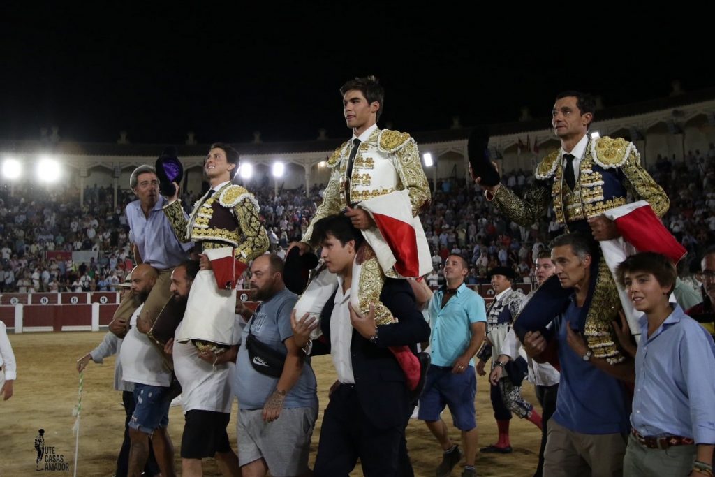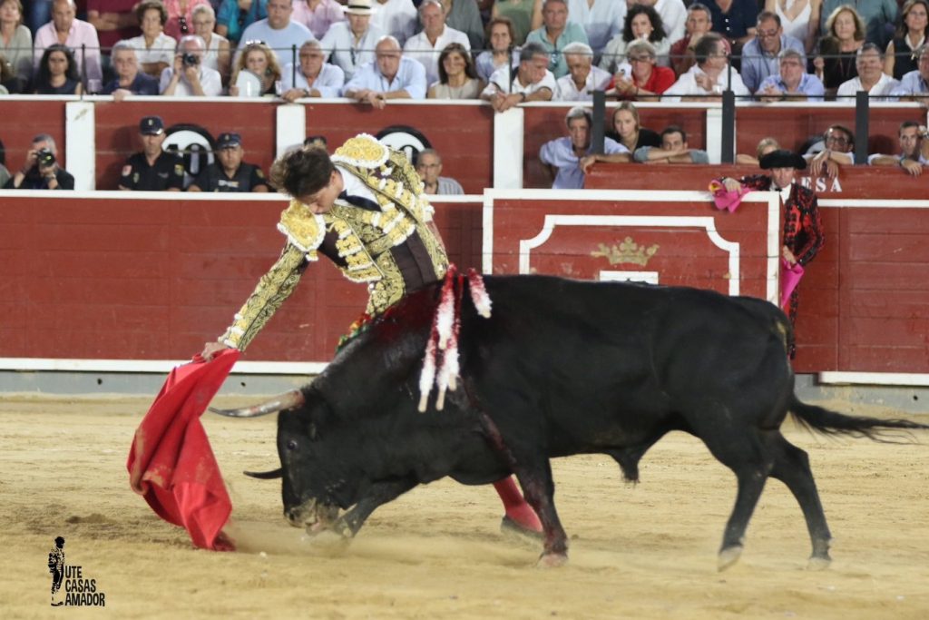 Salió a saludar la ovación del público Roca Rey, antes de la salida del primero de su lote. Buen gesto de la afición albaceteña. El toro tuvo bravura y casta aunque no estaba sobrado de fuerza. El diestro peruano inició el trasteo con pases cambiados por la espalda, conjuntando después una obra de mucho mando y poder, así como de temple y profundidad en los muletazos. Se pegó un arrimón final con el que terminó por calentar los colmados tendidos del coso manchego. Estocada algo desprendida. Oreja con petición.