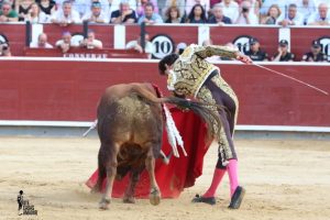 El sexto de la corrida siguió la misma tónica del resto del encierro, es decir, nobleza y clase en la embestida, desplazándose también con humillado y con profundidad tras el trapo rojo. Resaltar de la labor de Caballero los naturales, en los que pudo sentirse especialmente y expresarse. Tuvieron empaque y enjundia. En la parte final de la faena, se metió entre los pitones, conectando con los tendidos. Espadazo algo desprendido. Oreja.