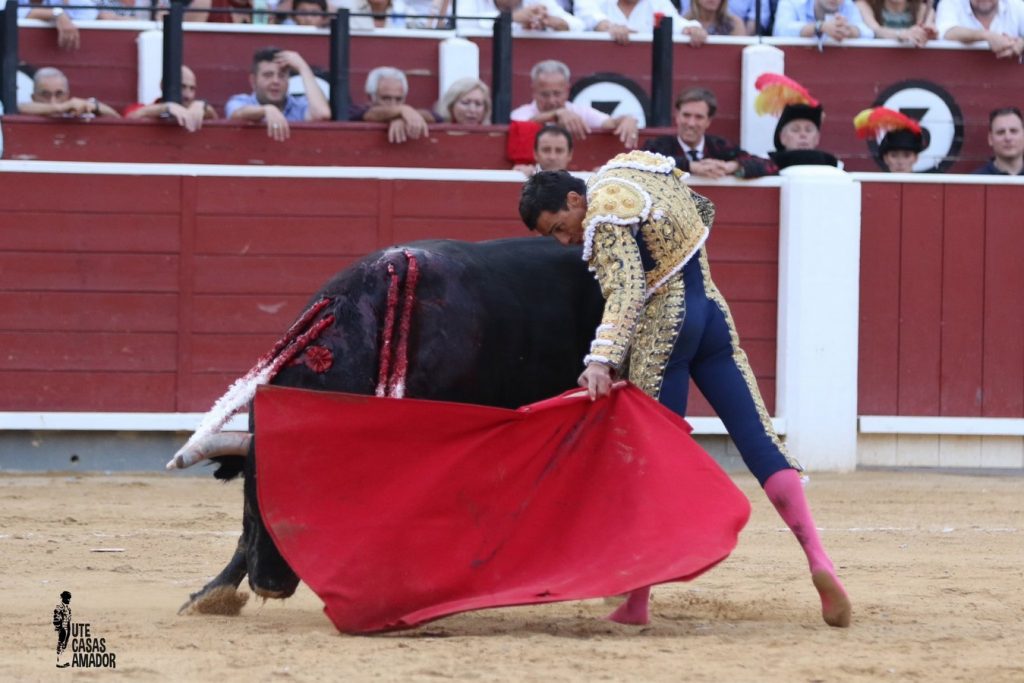 El primero que correspondió a Paco Ureña fue un astado exigente y cambiante en su embestida. Con temple y buen pulso lo pasó de muleta el diestro murciano, que consiguió pasajes de bastante mérito con la mano derecha, por dónde llegaron los momentos de mayor acople con su enemigo. Fue aplaudido después de pasaportar al de Daniel Ruiz.