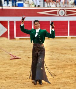 Dos orejas cortaron tanto la rejoneadora francesa como la novillera segoviana