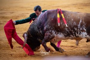 Aguado cortó una oreja al tercero, sobrero de Cuvillo con buena condición al que faltó el último tranco en su embestida. Le puso mucho el torero, llenando la escena, cuidando las salidas y las entradas de la cara del toro, acompañando con gusto cada embestida, sobre todo en una serie al natural citando con el “cartucho del pescao”. Redondeó en el sexto, al que cortó las dos orejas con otra faena de gran expresión calibrando a la perfección además la duración del animal y cerrando faena a dos manos con mucha cadencia.