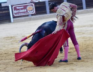 El que pisó el ruedo en el tercer lugar, ‘Jurel’, se movió bien tras el percal de Dennis Martín que lo meció despacio y con buen gusto. Quite por verónicas de Javier Torres ‘Bombita’. Banderilleó al cornúpeta de El Torero el propio espada de la Escuela Taurina de Almería, que cuadró en la cara y colocó arriba los garapullos. Con un farol de rodillas y muletazos ayudados empezó su labor Dennis Martín. Repetidor y encastado el eral, al que sometió por bajo el joven torero almeriense, dejándole siempre la muleta puesta por delante. Muy enfibrado y con muchas ganas Dennis Martín, que le hizo de todo al novillo, que tuvo bravura y entrega en su embestida. Pinchazo y estocada desprendida. Oreja con petición de la segunda.