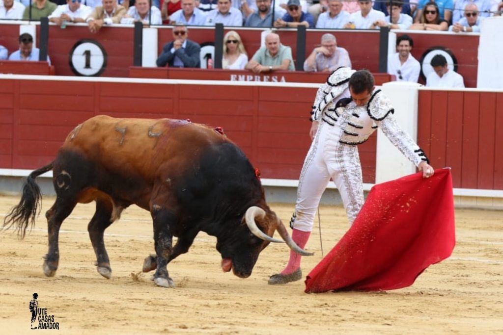 Otro toro de nota alta fue el segundo, bravo, noble y con mucha clase, sobre todo por el pitón izquierdo. Templado, con gusto, con un trazo de muletazo muy largo Ginés Marín, que deletreó el toreo por ese lado, y también por el derecho, reuniéndose mucho con la embestida, buscando el ajuste. El final de faena con ceñidas bernadinas, terminó de calentar los tendidos del coso albaceteño. Espadazo trasero. Oreja tras aviso.