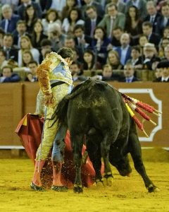 4º ‘Gentil’, nº 76. Sensacional recibo por verónicas de Morante de la Puebla al cuarto, abrochado con una media de cartel. Gran quite, también a la verónica, tras el primer puyazo. Juan José Domínguez lidió de forma eficaz. Con mucha torería se salió hasta los medios Morante para iniciar la faena de muleta. Asentado y con verdad lo toreó el diestro cigarrero, encajado y ralentizando la embestida al de Garcigrande. Mejor el animal por el lado derecho, por dónde fundamentó el quehacer Morante, que dejó bellas estampas de toreo añejo para el regusto de los buenos aficionados. Estoconazo. Dos orejas.