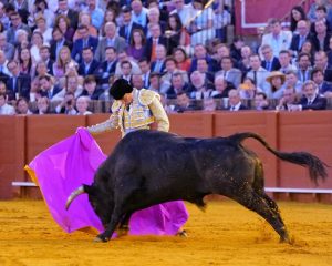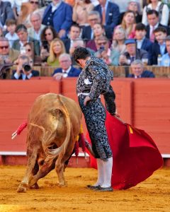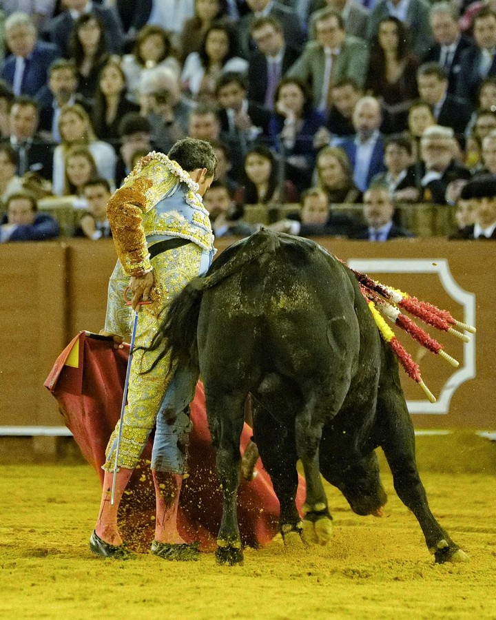 Real Maestranza de Caballería de Sevilla. Corrida del Domingo de Resurrección. Lleno de ‘no hay billetes’. Ejemplares de la divisa de Garcigrande. Los animales tuvieron buena presentación pero escasa bravura, el mejor fue el quinto, que sí que tuvo esta cualidad así como fijeza y obediencia. El cuarto fue noble y con calidad pero le faltó motor.