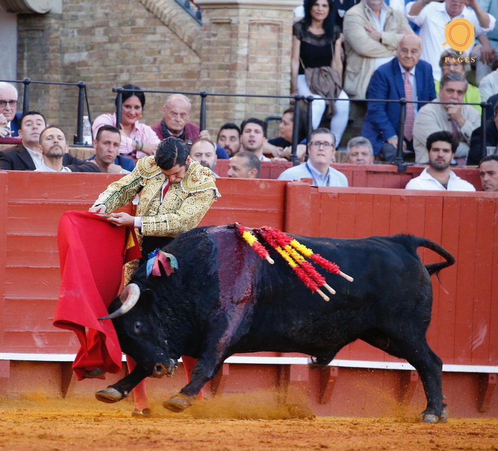 1º ‘Treinta y Dos’, Nº 128. Muy suelto salió el toro en el saludo capotero por verónicas de Morante de la Puebla, que ejecutó algunas que hicieron crujir la Maestranza. El animal evidenció nobleza pero la raza justa, abriendo la boca ya en ese momento. Extraordinario quite a la verónica del diestro cigarrero después del primer puyazo. El astado de la divisa salmantina humilló mucho en las telas, con calidad. Buen quite por delantales de Juan Ortega. Sobresaliente lidia de Juan José Domínguez y con las banderillas Antonio Joao Ferreira. Inspirado comienzo de faena de Morante de la Puebla, que ligó una primera tanda con la derecha toreando muy de verdad, muy encajado. El ejemplar de Domingo Hernández tuvo tanta clase como poco empuje y motor, muy bien Morante dándole sus tiempos y distancias para no agobiarlo, aliviándolo por arriba. Terminó la faena con una tanda de naturales, citando de frente, de gran belleza. Pinchazo, pinchazo hondo y dos descabellos. Ovación con saludos tras aviso.