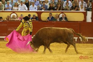 Plaza de toros de El Puerto de Santa María (Cádiz). Tercer festejo de la Temporada de Verano. Segunda corrida de toros. Lleno de ‘no hay billetes‘. Astados de la vacada de El Freixo, el 5º ‘Gordito’, nº 32, premiado con la vuelta al ruedo.
