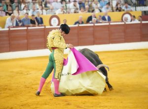 3º ‘Acebuche’, nº 23. El que hizo tercero no se prestó con el capote, se le cruzó a Pablo Aguado. Derribó al picador Mario Benítez, que volvió a subirse al caballo por el lado contrario. En la lidia, cogió al banderillero Diego Ramón Jiménez, que se marchó enseguida a la enfermería doliéndose de la muñeca. Sentado en el estribo, con ayudados, empezó la faena Pablo Aguado. Más informal y cambiante el toro de Garcigrande al que sometió por abajo Aguado. Hilvanó un trasteo presidido por la naturalidad, la torería y el temple. Con esos mimbres cuajó una labor de mucha prestancia y sabor, que caló en los tendidos. Gran estocada. Dos orejas.