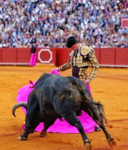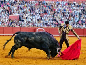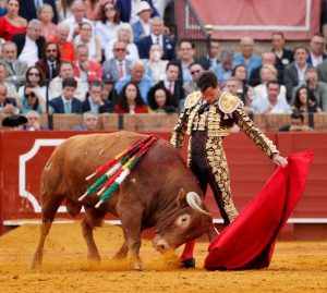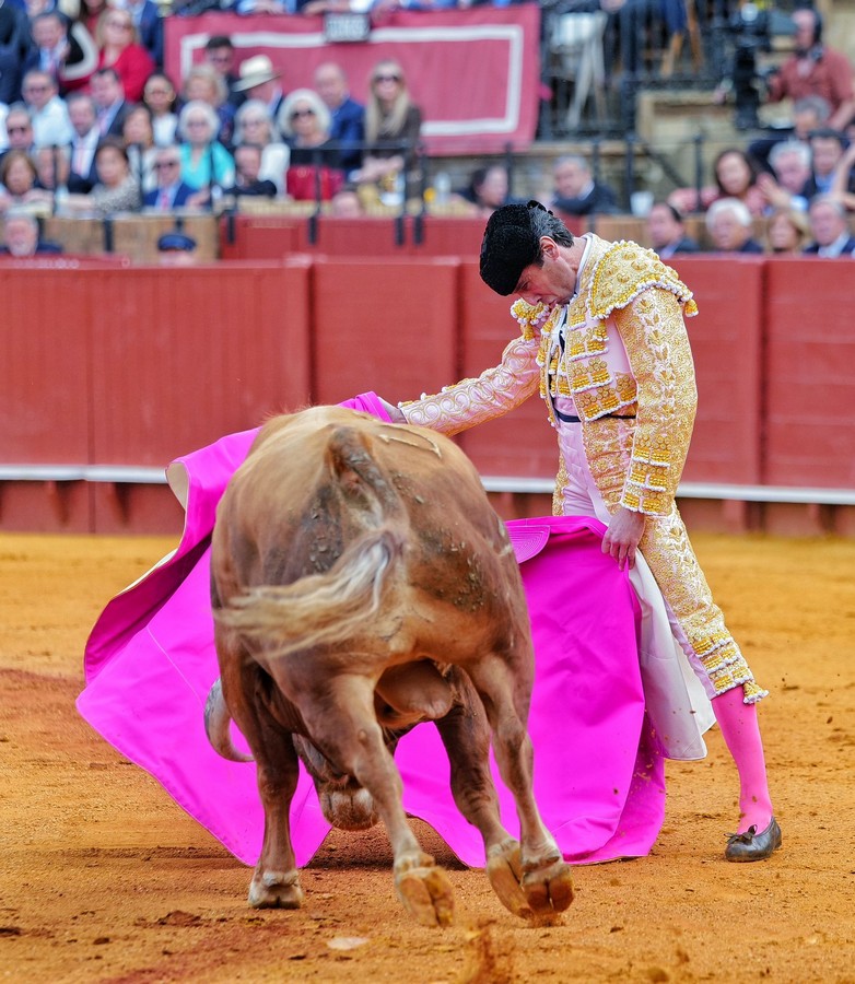 Real Maestranza de Caballería de Sevilla. Decimotercero festejo de la Feria de Abril. Undécima corrida de toros. Lleno de ‘no hay billetes’. Ejemplares de la vacada de Juan Pedro Domecq, de buena presencia pero con muy poca raza y bravura. Se vinieron abajo en el tercio final, además tampoco tuvieron clase. El mejor fue el 3º.