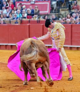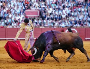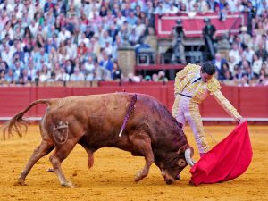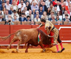 1º ‘Puntero’, nº 81. Sensacional recibo a la verónica de Daniel Luque al primero de la tarde, con las manos bajas y muy despacio. Dos buenos puyazos le endilgó ‘El Patilla’. Quite por verónicas de Juan Ortega, con el toro humillando pero con corto recorrido. Brindó la faena Luque a sus dos compañeros de cartel: Juan Ortega y Pablo Aguado. Muy templado el torero de Gerena en las primeras tandas, llevando la franela a media altura para que el animal no se fuera al suelo, ya que tenía las fuerzas justas. Poco a poco le fue bajando más la mano Luque aunque al astado le faltaba transmisión y motor. Pasaportó al cornúpeta de una estocada algo trasera y desprendida. Silencio.