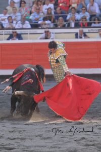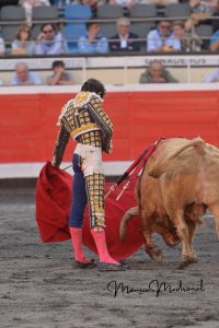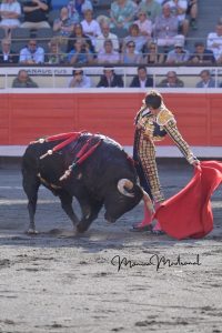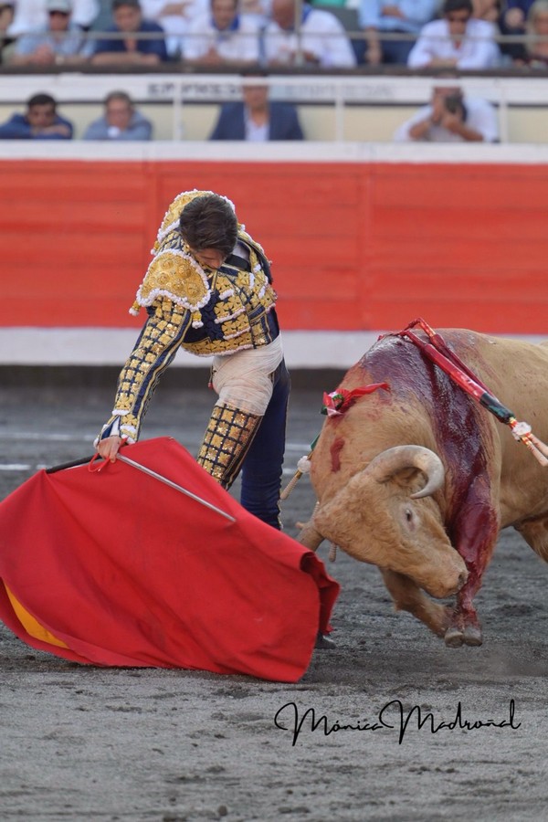 No se desplazó demasiado en el capote de Sebastián Castella el primero de la corrida. Buena pelea del toro en varas, metiendo la cara abajo. Gran lidia de José Chacón. Se desmonteró Rafael Viotti después de lucirse con las banderillas. Faena muy templada y reunida del diestro francés, que logró los pasajes más lucidos del trasteo con la mano izquierda, con un toro noble pero al que le costó ir hacia delante. Muy por encima de su antagonista. Estocada trasera. Al intentar descabellar es volteado de manera muy fea, siendo corneado en el glúteo derecho. Palmas al marcharse a la enfermería.