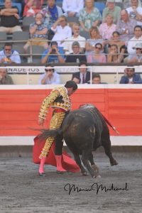 Miguel Ángel Perera (Turquesa y oro): Ovación con saludos y Ovación con saludos tras aviso.