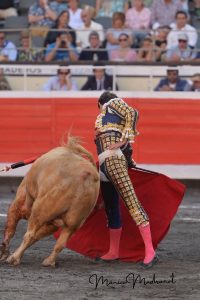 Sebastián Castella, que ingresó en la enfermería tras el arrastre del primero de la tarde, regresó al ruedo enseguida, continuando la lidia hasta liquidar a su segundo, poniéndose entonces en manos de los médicos.