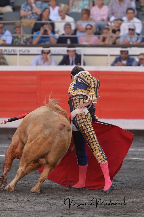 Sebastián Castella (Azul marino y oro): Palmas al irse hacia la enfermería y Ovación con saludos.