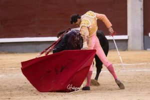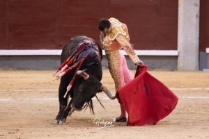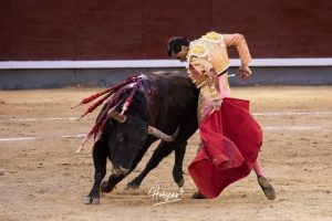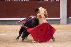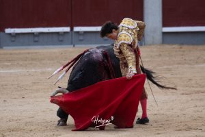 El peruano le cortó la oreja al primero de su lote, que le hirió en el muslo derecho, mientras que el madrileño hizo lo propio con el tercero de la corrida