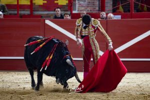 Plaza de toros de Valdemorillo (Madrid). Primera de la Feria de San Blas. Novillada picada. Tres cuartos de entrada. Astados de la ganadería de Jiménez Pasquau, el 6º ‘Garrote’, nº 11, ha sido premiado con la vuelta al ruedo.